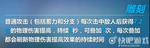 疊滿效果為36%的物傷加成,很多物傷角色都能在短時(shí)間吃滿加成,強(qiáng)度屬于中等偏上的范疇,3s的持續(xù)時(shí)間也對效果有一定的限制,如:刷怪間隔超過3s、各種boss切形態(tài)斷檔等。