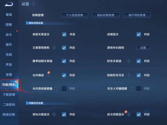 3、打開設(shè)置后在左側(cè)找到功能/隱私按鈕,點擊進入。