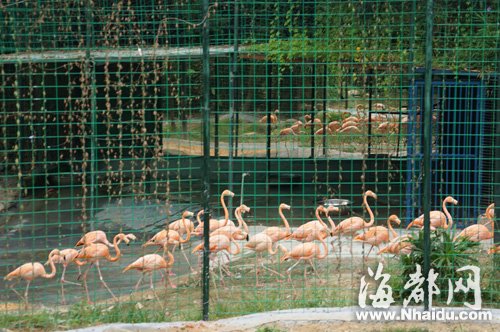 園內(nèi)裝了一面大鏡子,為喜歡群居的火烈鳥(niǎo)帶來(lái)安全感