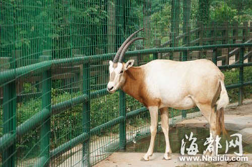 白長(zhǎng)角羚生活于干旱的平原和沙漠地帶,好合群,感覺(jué)靈敏,善于奔跑。“它們可以長(zhǎng)達(dá)10個(gè)月不喝水,比我們熟知的駱駝更加耐渴。”在不遠(yuǎn)處,一群鴕鳥(niǎo)正昂首踱步。“這是我們福州動(dòng)物園新近嘗試的‘混養(yǎng)’,將不同的動(dòng)物養(yǎng)在一起,它們的生活也更有趣。”當(dāng)然,鴕鳥(niǎo)和白非洲白長(zhǎng)角羚長(zhǎng)角羚以前就是非洲草原上相親相愛(ài)的好鄰居。