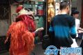 男子在福州街頭“舞獅”乞討 店家不給錢敲鈸賴著不走
