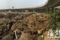 福州鼓山大橋下鰲峰路旁一夜冒出渣土山,50棵的楊樹和大量八角金盤灌木被埋。