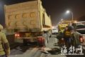 2015-01-20 08:48 來源:閩南網(wǎng)閩南網(wǎng)1月20日 前日晚上,福州三環(huán)快速路西嶺互通附近發(fā)生慘烈交通事故,一輛渣土車和一輛奧迪轎車發(fā)生刮擦后,兩車停在快車道上,渣土車司機下車在車后方擺放反...