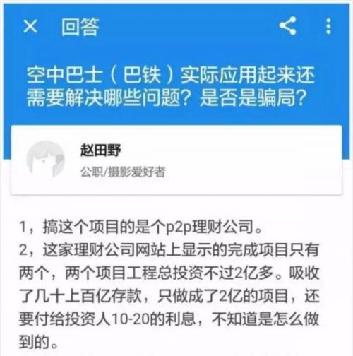 4、最重要的是,“巴鐵”項(xiàng)目的背后其實(shí)是一個(gè)做網(wǎng)絡(luò)金融P2P的理財(cái)公司在運(yùn)作,而且該公司一直在吸納投資人的存款,并承諾回以高額利息,但其資金鏈風(fēng)險(xiǎn)很高..