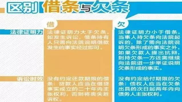 借條和欠條是不同,兩者在都沒(méi)有注明還款日期的情況下,借條的法律時(shí)效性是20年,而欠條的法律時(shí)效性是2年。