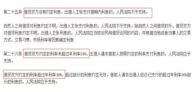 焦律師:根據(jù)《中華人民共和國(guó)民法通則》、《合同法》以及《最高人民法院關(guān)于審理民間借貸糾紛的司法解釋》,民間借貸的利息不能超過(guò)24%的,超過(guò)24%到36%的部分,是屬于效力待定的,超過(guò)36%的部分,那就屬于不受法律保障了。