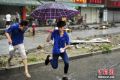 2016-08-02 13:50 來源:澎湃新聞網(wǎng)8月2日,深圳鹽田綜合保稅區(qū),兩名員工跨過路面上的積水。當(dāng)日3時(shí)35分,臺(tái)風(fēng)“妮妲”在深圳大鵬半島沿海地區(qū)登陸,登陸時(shí)中心附近最大風(fēng)力14級(4...