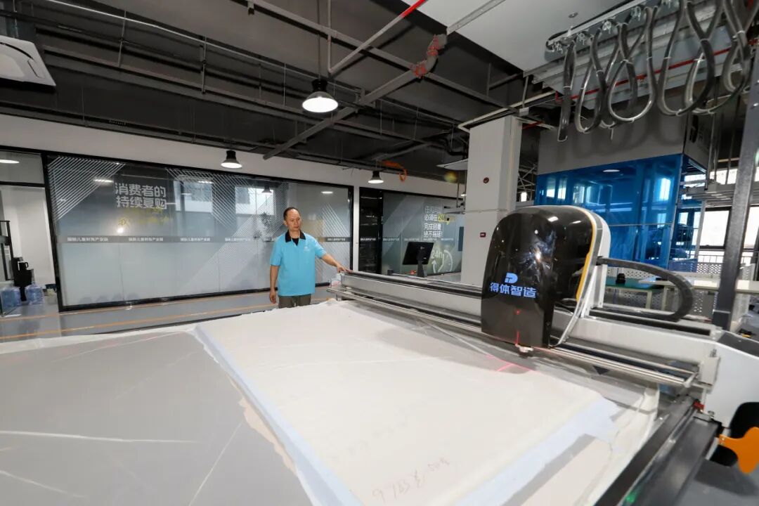 該產(chǎn)業(yè)園總面積1.6萬(wàn)平方米,8層空間功能分明:1樓為智能倉(cāng)儲(chǔ),配備云軌成衣艙實(shí)現(xiàn)快速出入庫(kù);2樓設(shè)智能展示區(qū);3樓是自動(dòng)化小單快反生產(chǎn)車間,依托5G吊軌縫制技術(shù),更快實(shí)現(xiàn)快返模式的落地;4樓為自動(dòng)化裁剪區(qū);5樓為共享設(shè)計(jì)打樣中心;6樓設(shè)共享發(fā)布中心與T臺(tái);7樓為全場(chǎng)景共享直播中心,支持內(nèi)容制作與達(dá)人孵化;8樓為品牌集群辦公空間,促進(jìn)資源協(xié)同創(chuàng)新。