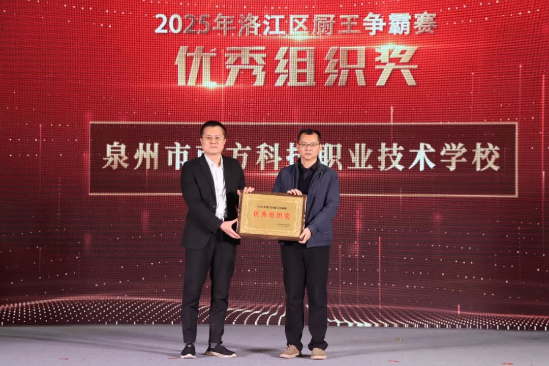現(xiàn)場(chǎng)還舉行了“2025年洛江區(qū)廚王爭(zhēng)霸賽推薦名菜”授牌儀式,并對(duì)在賽事組織中表現(xiàn)突出的泉州市南方科技職業(yè)技術(shù)學(xué)校頒發(fā)了“優(yōu)秀組織獎(jiǎng)”。