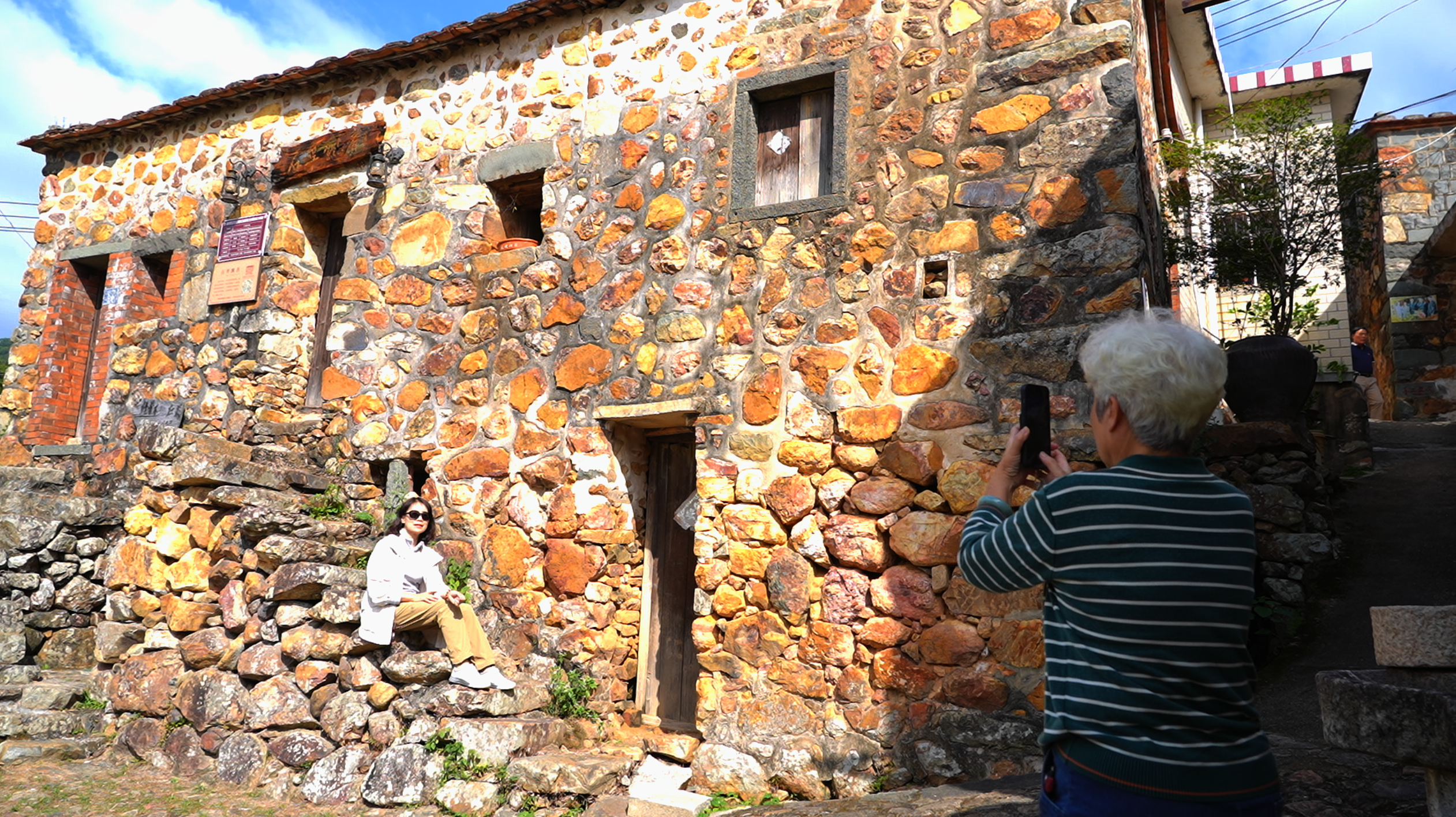 樟腳村的走紅,也吸引了不少名人前來打卡。陳文輝指著一堵風化石墻介紹道:“莫文蔚曾經在這個地方拍過照,后來很多游客都專門來找這個打卡點。” 除了莫文蔚,還有不少明星、網紅前來樟腳村探訪,他們的社交媒體分享,進一步提升了樟腳古民居的知名度。