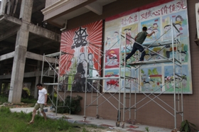 兩幅壁畫以社會主義核心價值觀為主題,其中一幅長3.8米、寬4米,另一幅長4米、寬4米,成為漁村里的一道亮麗風(fēng)景。?。ㄓ浾?劉巧麗 郭雅霞 文/圖)
