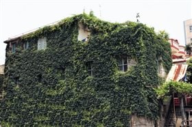 近日,記者在靈秀鎮(zhèn)西環(huán)路上看到一棟穿著“綠衣服”的房子,滿墻的爬山虎將房屋緊緊抱住,綠意盎然。