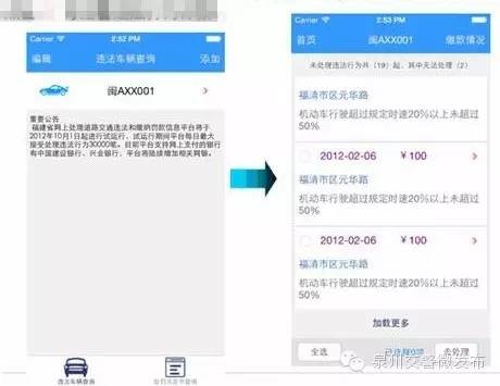 步驟四:查詢交通違法行為信息車輛添加完成后,點擊車輛,進入首頁,展開該車輛違法行為信息。點擊“〉”可查看違法行為詳情。