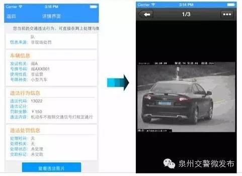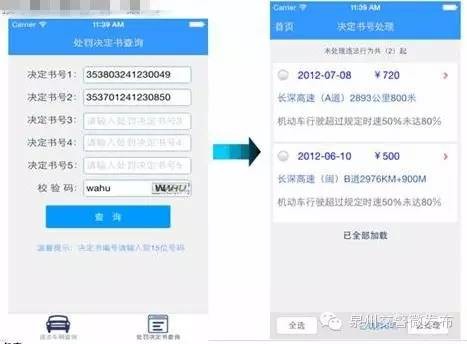 用戶可通過平臺手機客戶端查詢我省所有機動車違法記錄并可查看圖片,可對無記分的違法記錄處理及繳納罰款。同時,記分違法記錄在窗口辦理并取得處罰決定書號后也可直接在手機客戶端中繳納罰款。