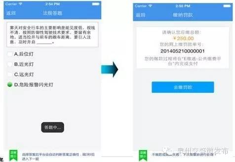 步驟六:網(wǎng)上處理(安全法規(guī)答題)閱讀協(xié)議點擊“我同意”,進入安全法規(guī)教育答題。答題結(jié)束點擊“去繳罰款”
