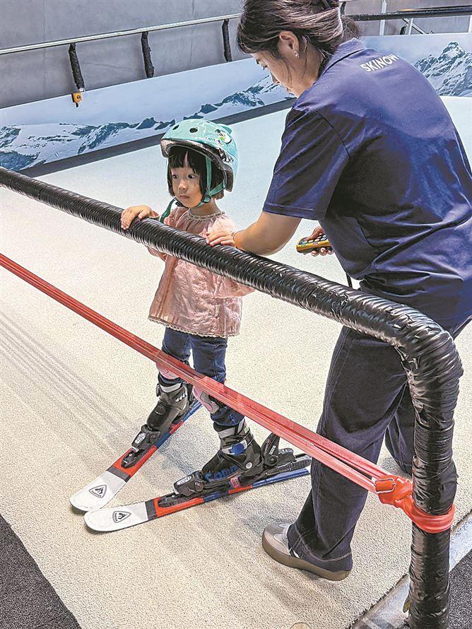 在另一臺雪機上,5歲的樂樂正跟著教練學(xué)習(xí)蹬雪動作。“孩子第一次滑雪就特別感興趣,室內(nèi)滑雪場坡度平緩,很適合初學(xué)者。”樂樂的媽媽李女士告訴記者,她打算先讓孩子在這里打好基礎(chǔ),寒假期間再帶他去北方的大型滑雪場體驗。